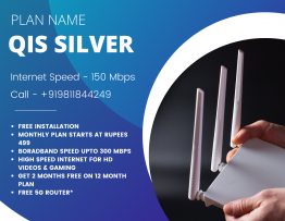 Quickly Internet is one of the best broadband service providers in Rajpur Khurd, Chhatarpur & South Delhi,India . We provide fast uninterrupted internet service up to 300 Mbps with high fast speed. We have different internet service plans so that you can pick your best as per your requirement.